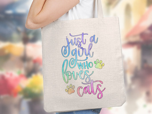 Just A Girl Who Loves Cats Cute Tote Bag, Reusable Tote Shopping Bag, Cat Tote Bag, Cat Lover Gift, Crazy Cat Lady Shoulder Bag, Cat Mom Bag