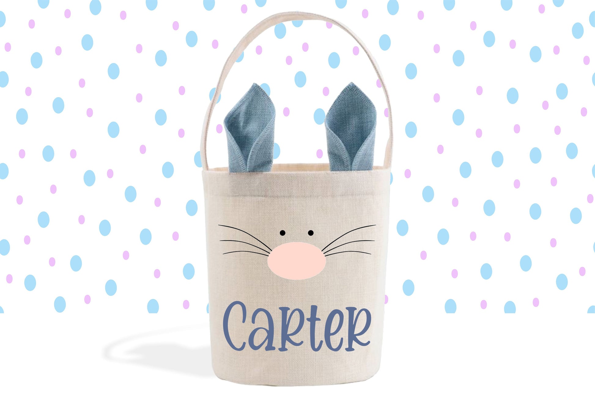 Boy's Easter Basket, Blue Bunny Ears, Cute Easter Gift Basket, Custom Easter Pail, Personalized Name, Easter Bunny Bag, Linen Basket for Boy
