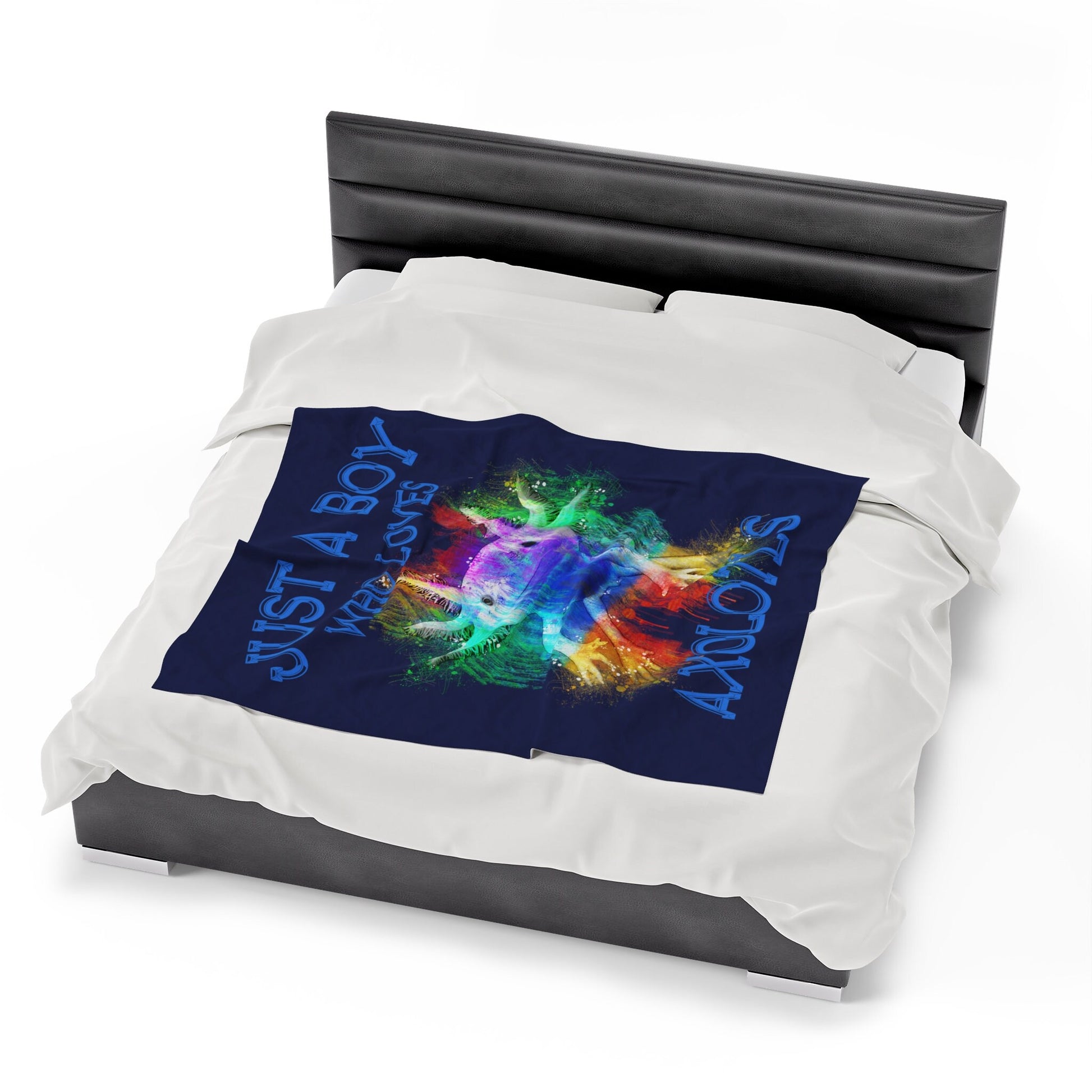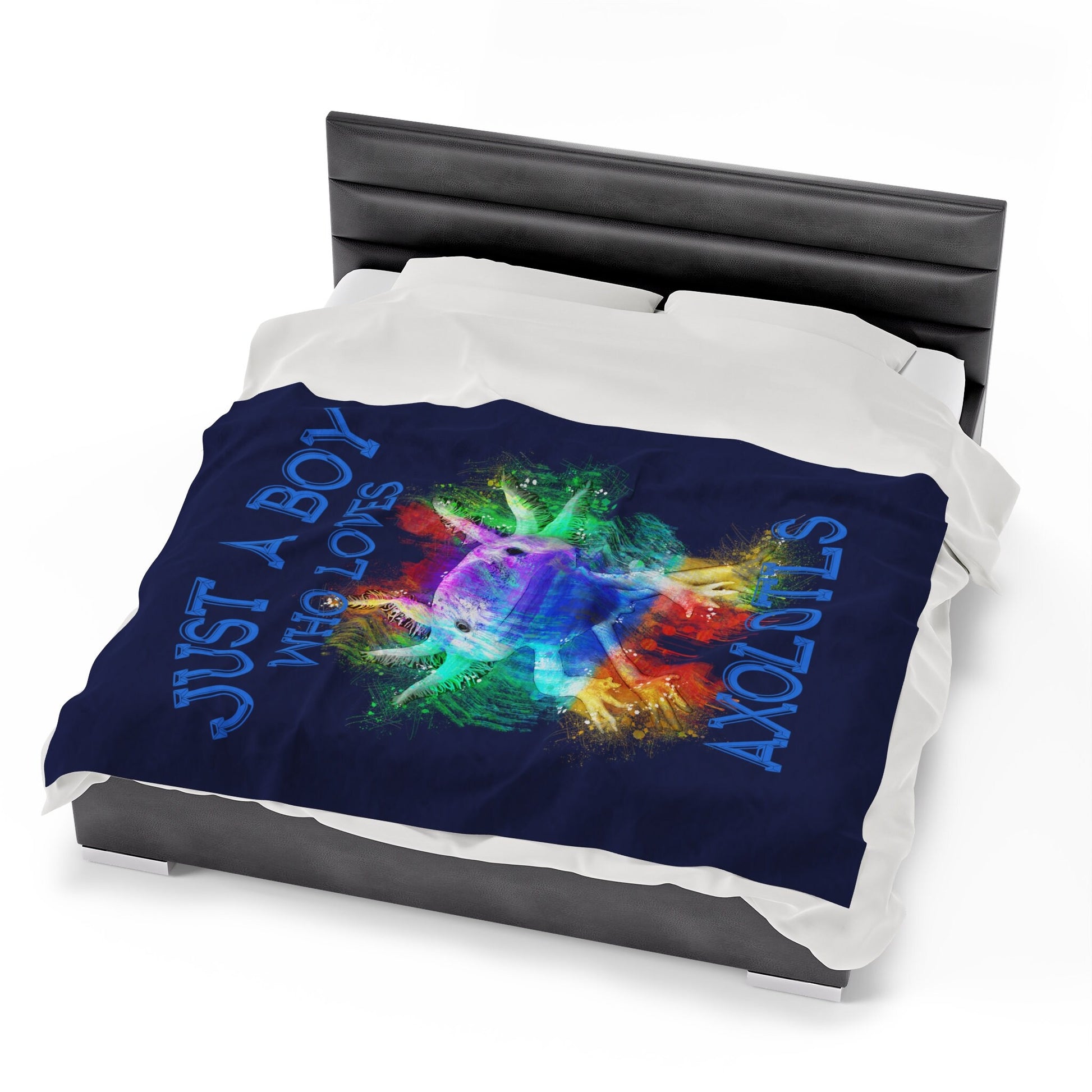 Just A Boy Who Loves Axolotls Blanket, Plush Velveteen Throw Blanket, Gift for Boy, Birthday Boy Gift, Couch Blanket, Boys Cozy Bed Blanket
