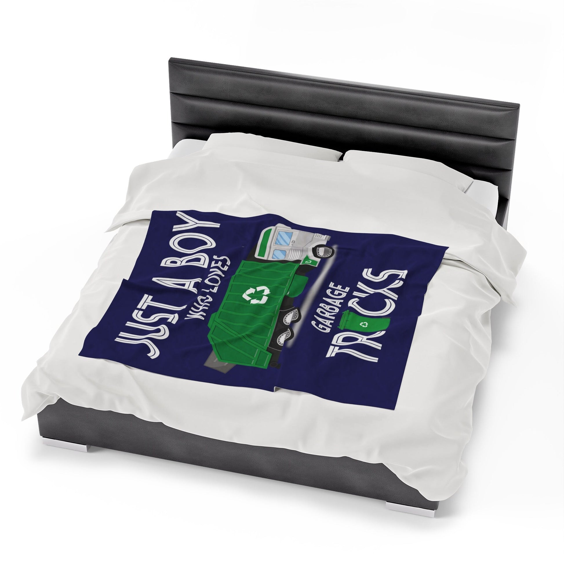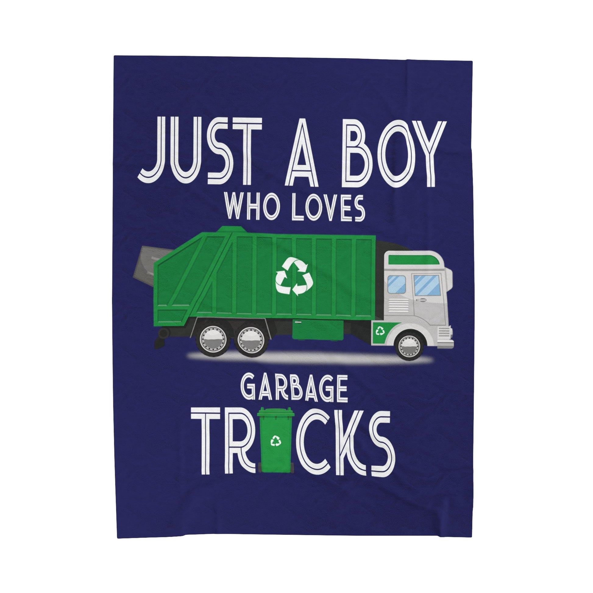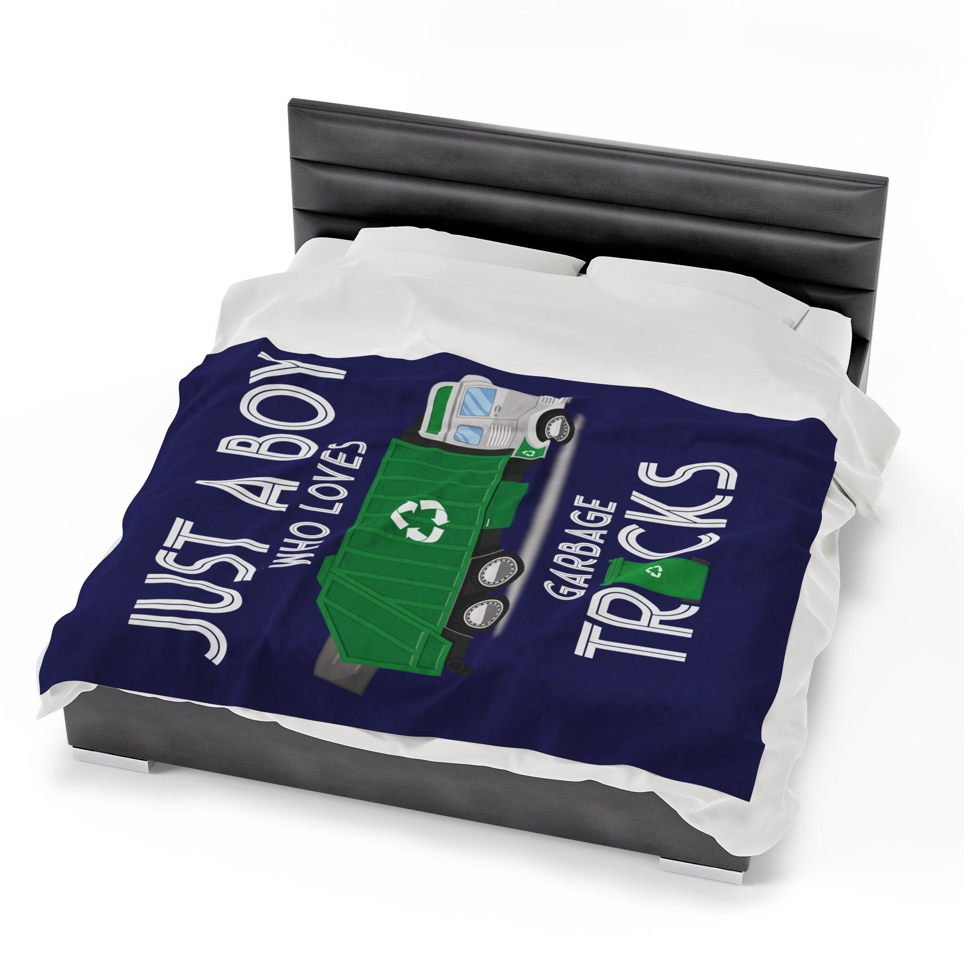 Just A Boy Who Loves Garbage Trucks Blanket, Plush Velveteen Throw Blanket Gift for Boy, Trash Truck Couch Blanket, Axolotl Cozy Bed Blanket