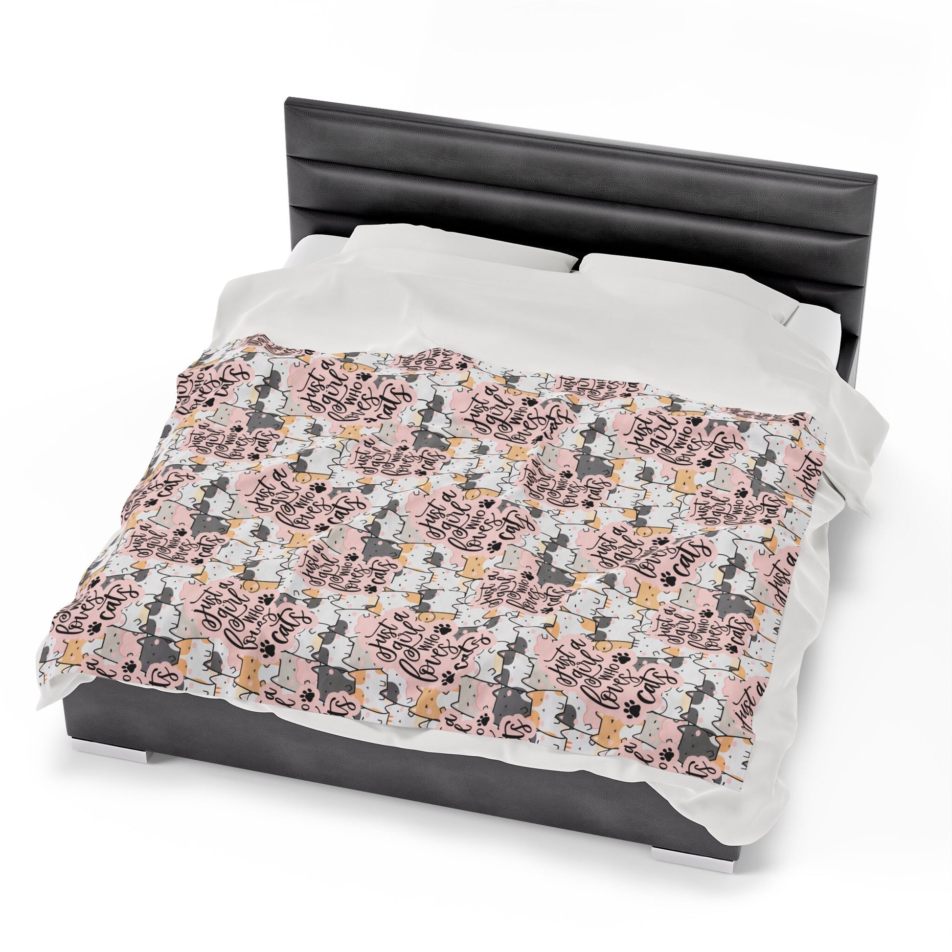 Just A Girl Who Loves Cats Blanket, Plush Velveteen Throw Blanket Gift for Mom, Birthday Girl Gift Couch Blanket, Axolotl Cozy Bed Blanket