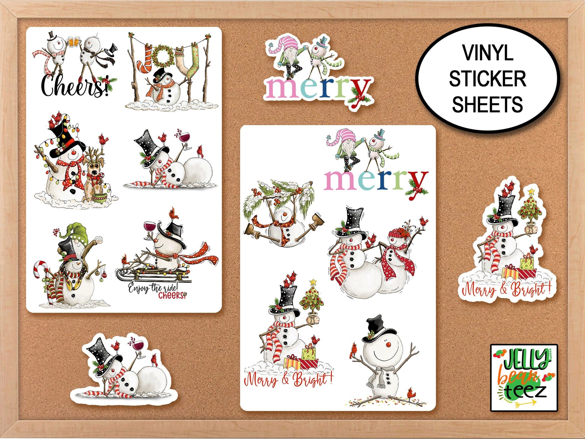 Snowman Family Holiday Stickers, Winter Stickers, Journal Stickers, Christmas Sticker Sheet, Merry & Bright, Planner Stickers, Snowman Decal