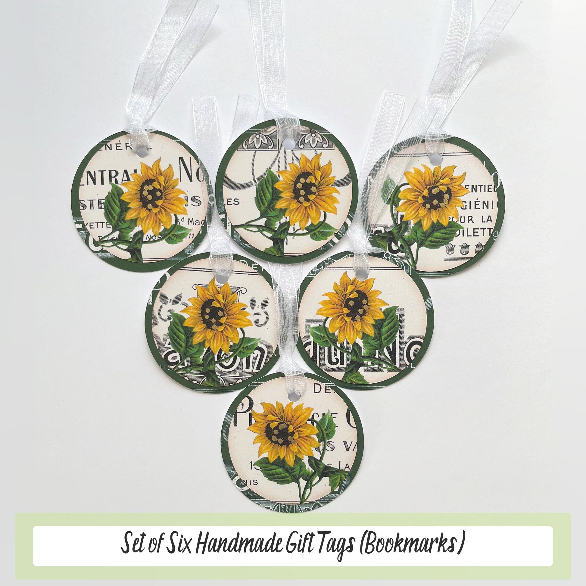 Sunflowers Round Junk Journal Tags, Bridal Shower Thank You Tag, Vintage Paper French Ephemera Hostess Gift Idea, Birthday Gift Tag Bookmark