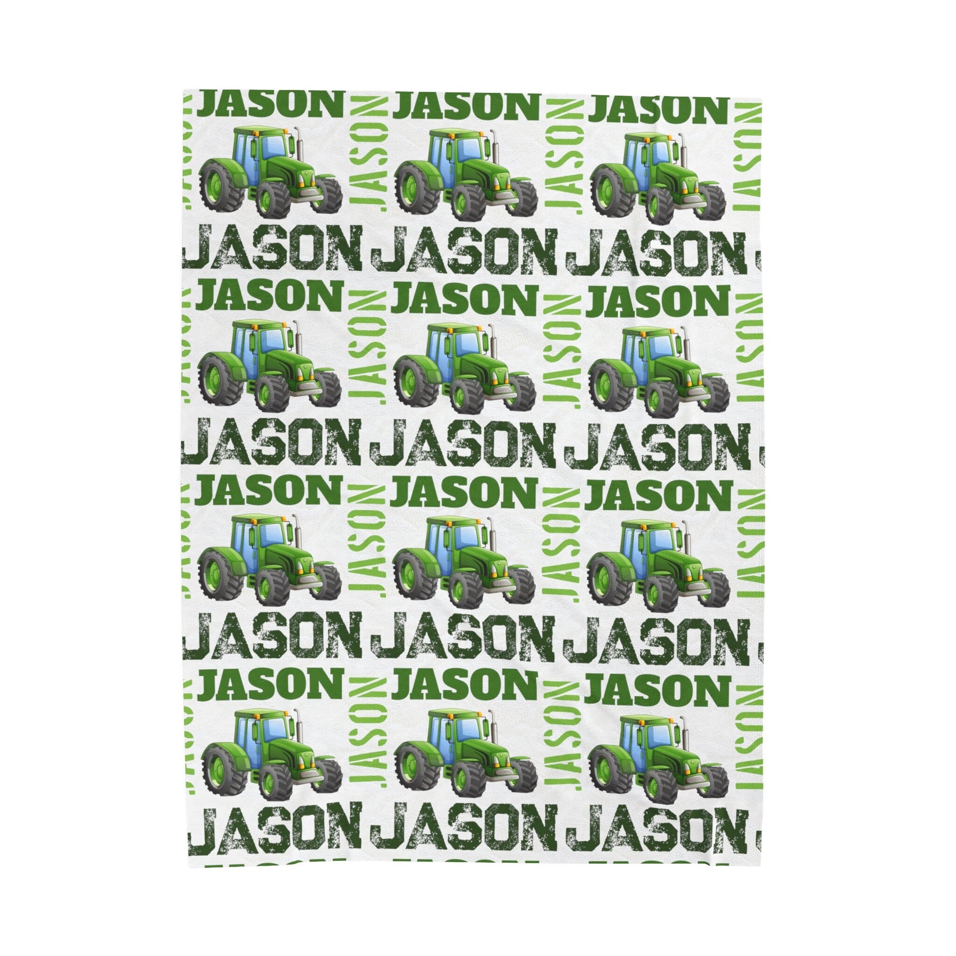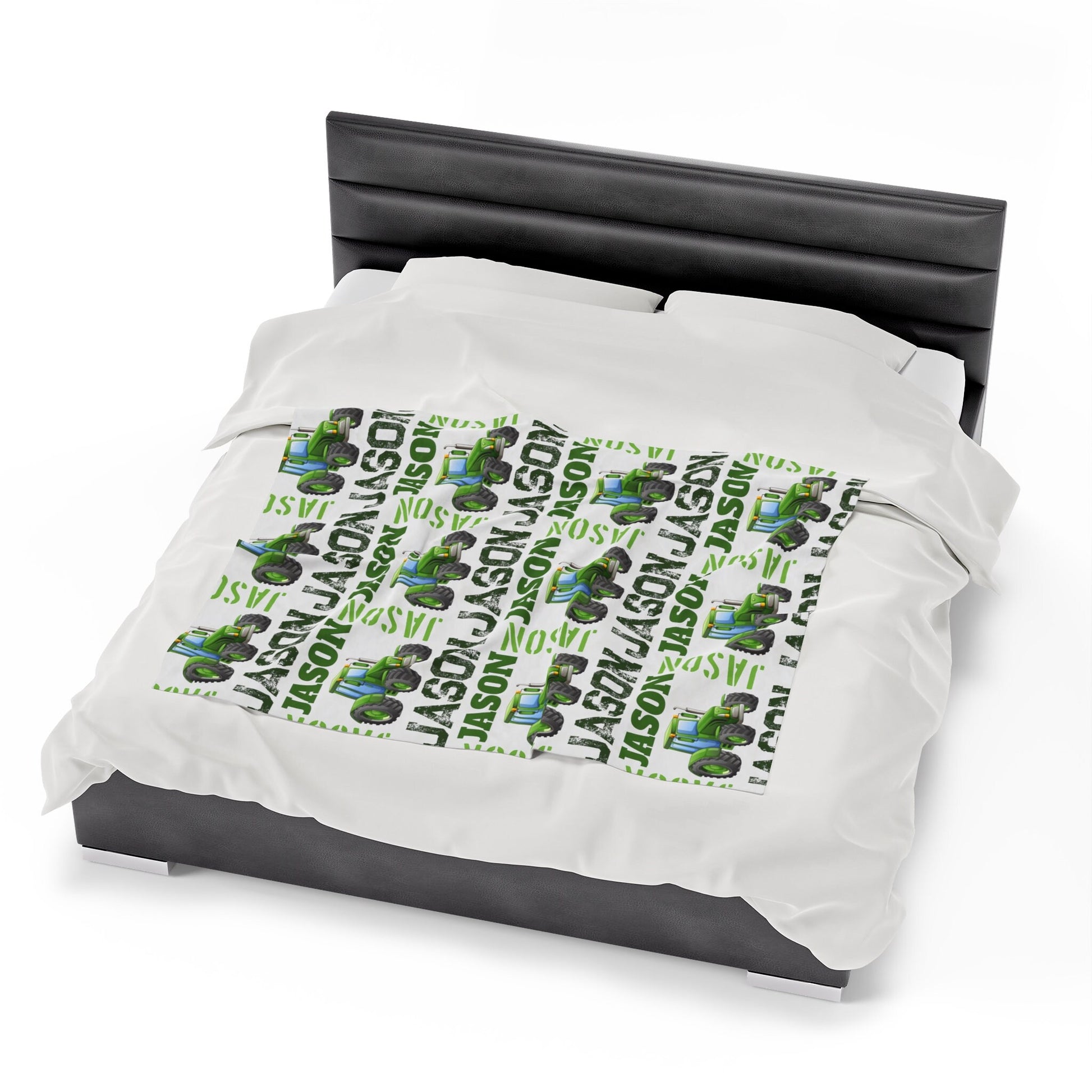 Tractor Custom Kid Blanket, Plush Velveteen Throw Blanket, Comfy Blanket With Name, Baby Boy Blanket, Personalized Throw, Cozy Bed Blanket