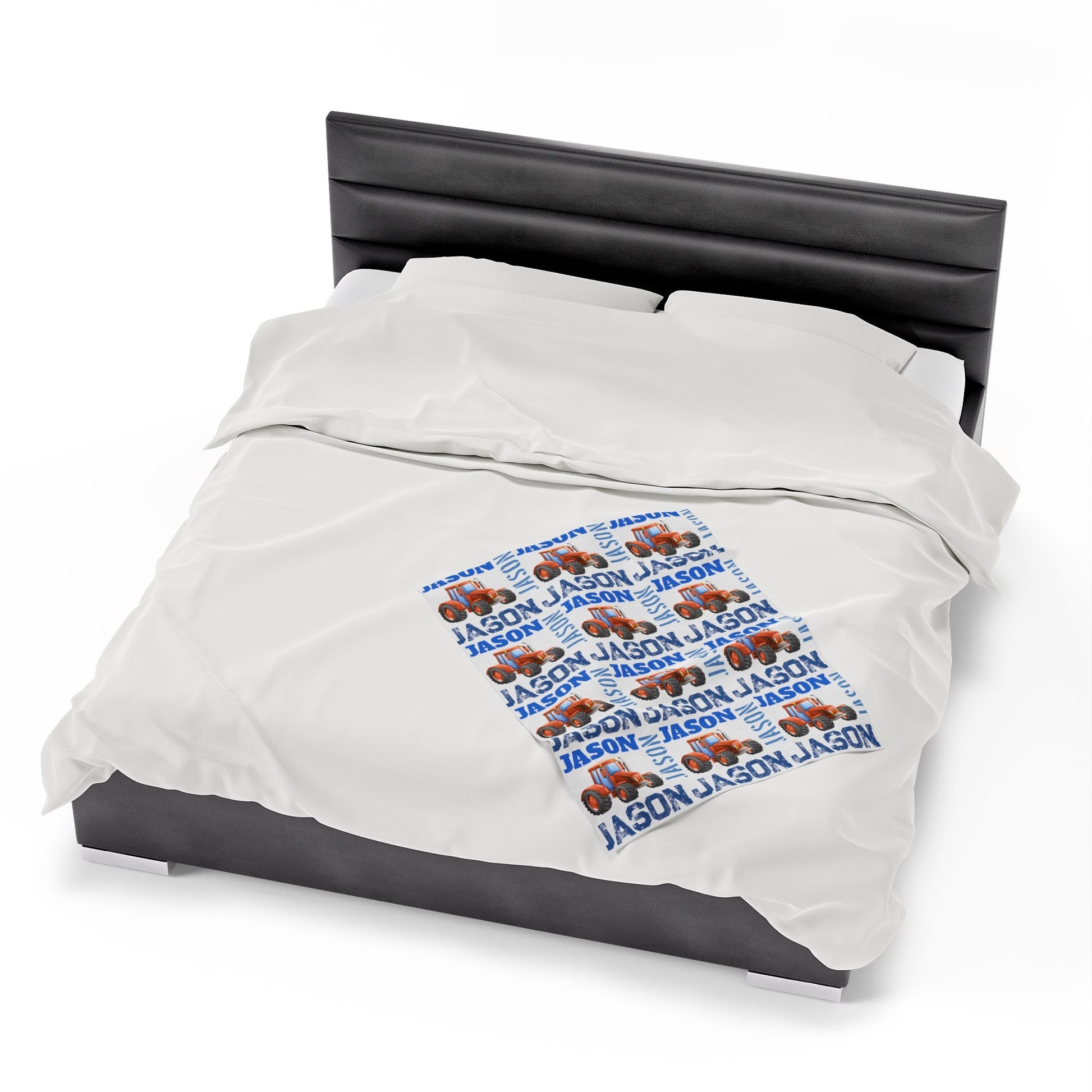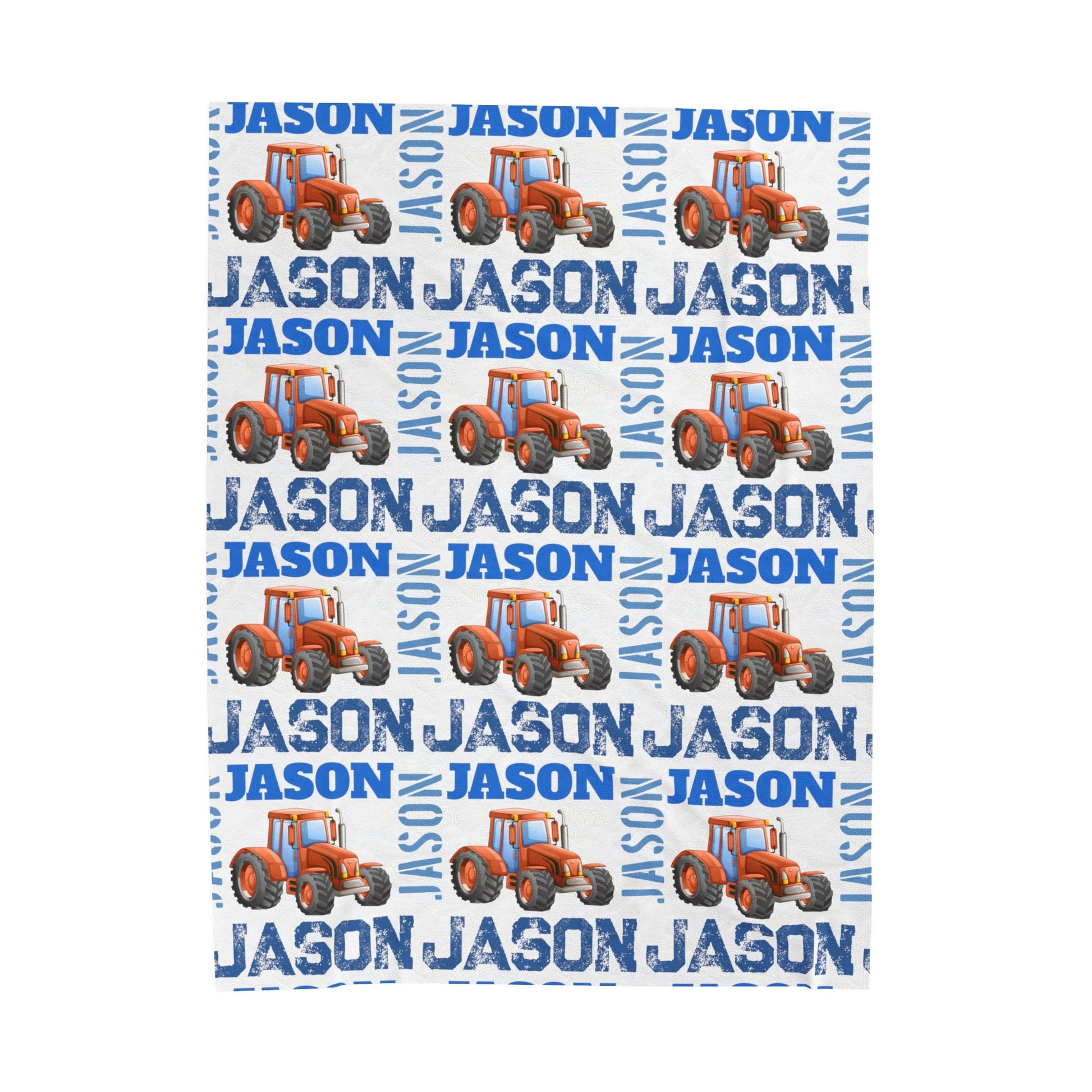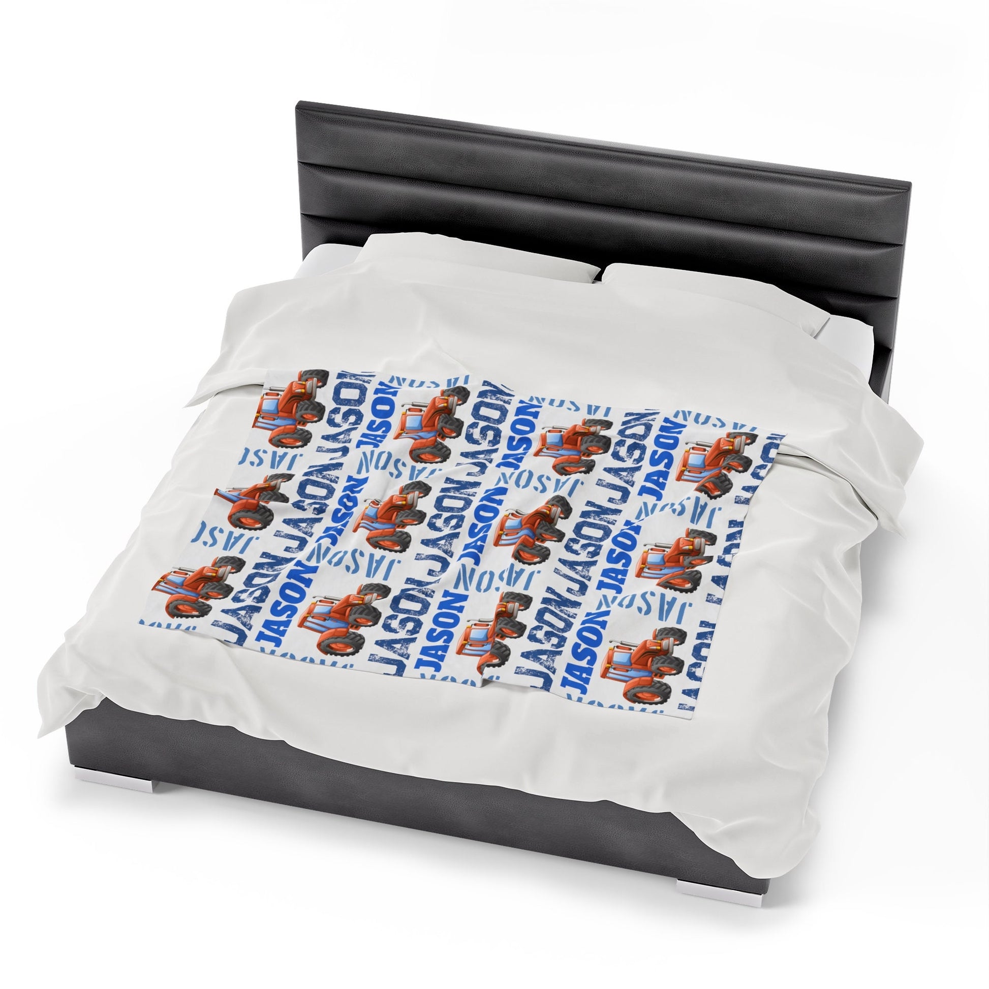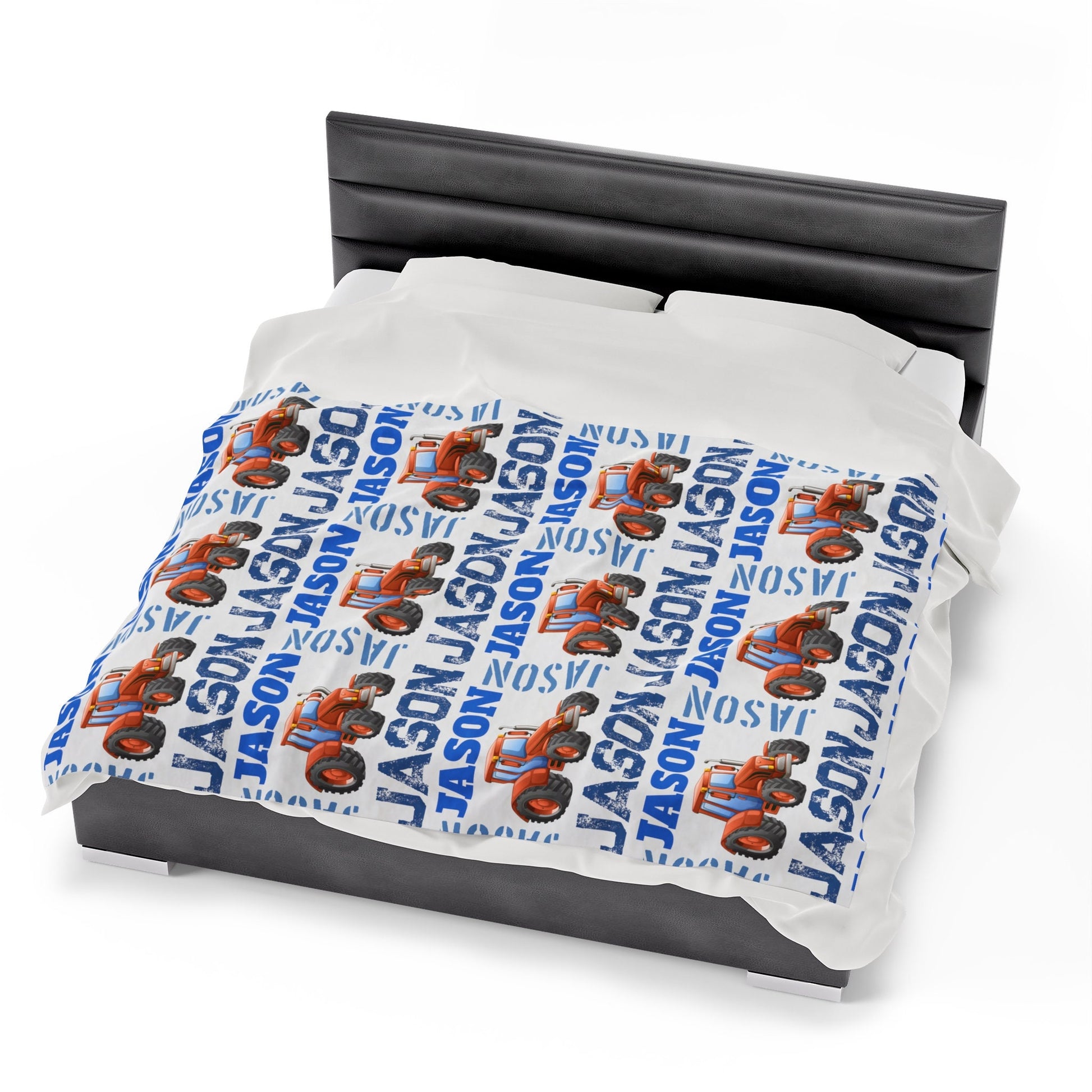 Tractor Custom Kid Blanket, Plush Velveteen Throw Blanket, Comfy Blanket With Name, Baby Boy Blanket, Personalized Throw, Cozy Bed Blanket
